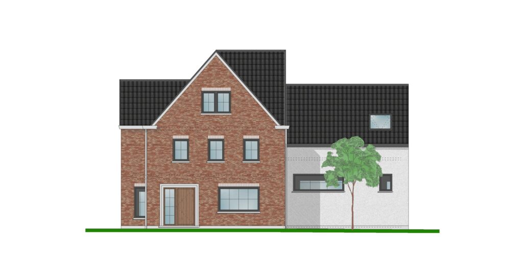 Grondige renovatie van een bestaande woning met loods tot een ruime gezinswoning vol natuurlijke lichtinval.