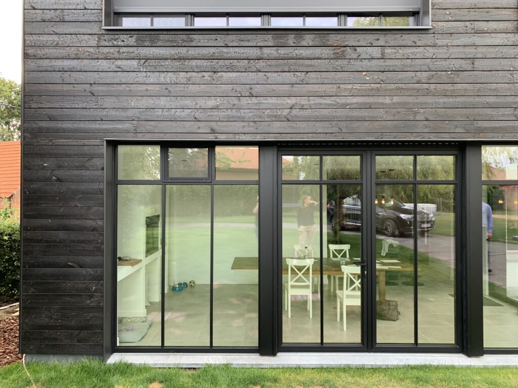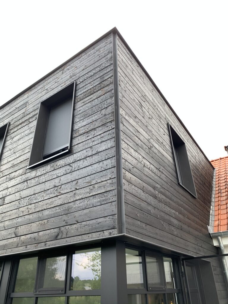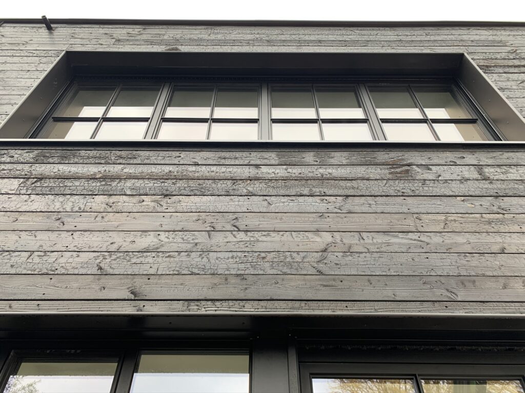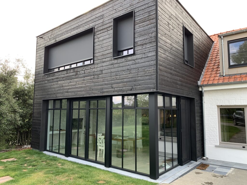 Materialen: Gevel in Shou Sugi Ban, Ramen in zwart aluminium