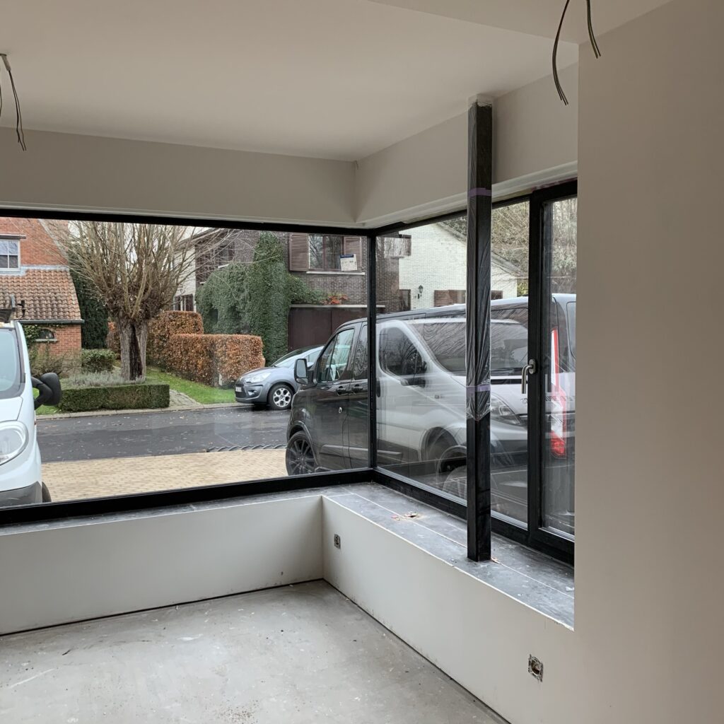De kleine raampjes werden vervangen door grote raampartijen, de gevels werden geïsoleerd en afgewerkt in zandkleurige sierpleister. Als knipoog naar de oorspronkelijke woning werd op de linkerzijgevel een gedeelte in de oude gevelsteen behouden.